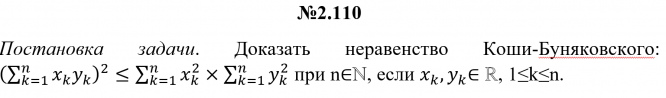 Показать/скрыть дополнительное описаниеМатематический анализ в задачах и упражнениях. В 3 томах. Том 1. Дифференциальное и интегральное исчисление Виноградова Олехник, СадовничийДоказать неравенство Коши-Буняковского: (∑_(k=1)^n▒〖x_k y_k 〗)^2≤∑_(k=1)^n▒x_k^2 ×∑_(k=1)^n▒y_k^2 при n∈ℕ, если x_k 〖,y〗_k∈ ℝ, 1≤k≤n. .