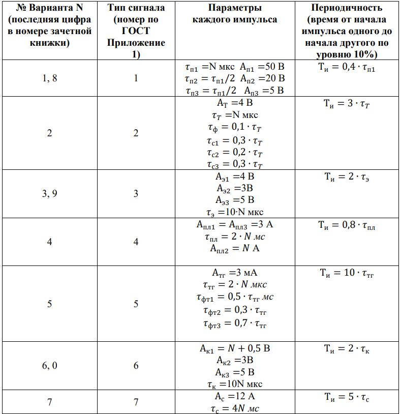 1) используя ГОСТ 16465-70 (см. приложение 2 раздела 1) изобразить осциллограмму пачки из трёх импульсов (см. таблица 1);