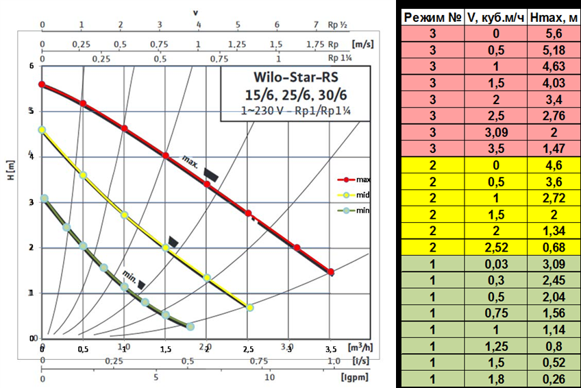 НаРисунке1.Представленырабочаяхарактеристиканапора«м»отразсхода«м³*ч¹» нагнетателя«Willo-Star-RS15/6,25/6,30/6»притрехрежимахработы:3–«max»,2