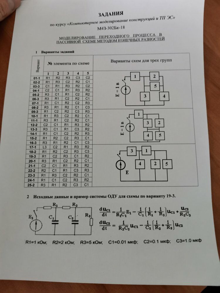 ДЗ: Вариант 12 – ДЗ– Моделирование переходного процесса в пассивной схеме методом конечных разностей
