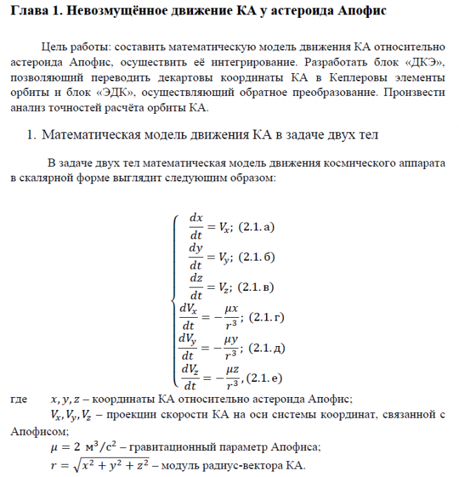 Для студентов МГТУ им. Н.Э.Баумана по предмету Математическое моделирование в баллистикеОтчет по лабораторной работе “Исследование движения КА у астероида Апофис"Отчет по лабораторной работе “Исследование движения КА у астероида Апофис"