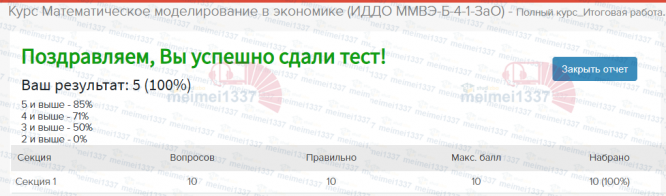 Курс Математическое моделирование в экономике - ответы к тестам: