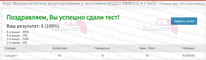Помощь со сдачей ЛЮБОГО итогового теста (экзамена) - Математическое моделирование в экономике: