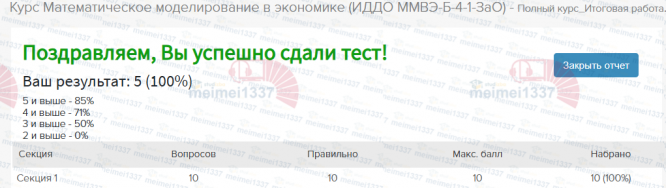 Курс Математическое моделирование в экономике - ответы к тестам: