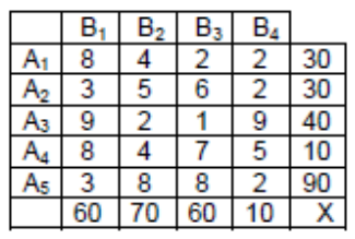 Найти оптимальный план транспортной задачи методом потенциалов на основе опорного плана, составленного методом минимальной стоимости. На каждом этапе необходимо преложить несколько вариантов построения цикла. Исходные данные о грузоотправителях (А), грузополучателях (В) и затратах на перевозку единицы груза представлены в таблице. Проверить оптимальность найденного решения с помощью Excel.
