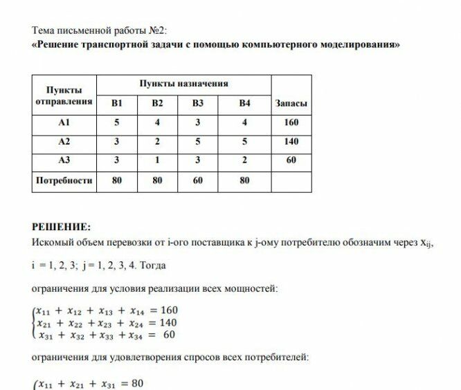 Задача: Решение транспортной задачи с помощью компьютерного моделирования