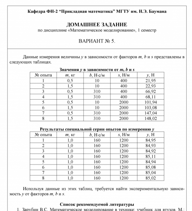 Для студентов МГТУ им. Н.Э.Баумана по предмету Математическое моделированиеДомашнее задание (вариант 5)Домашнее задание (вариант 5)