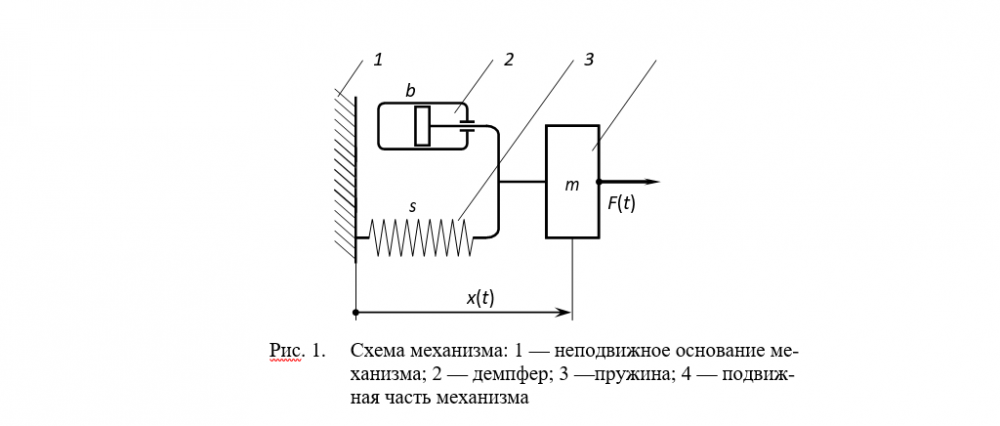 Вариант 9 - Механизм, состоящий из подвижной части, пружины и демпфера, соединен с неподвижным основанием. Под действием силы F(t) подвижная часть механизма перемещается по закону x(t), который является одинаковым для всех опытов.