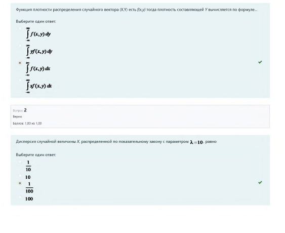 Ответы к заданиям: Демонстрационный вариант. Теория вероятностей и математическая статистика/Дополнительные главы математики