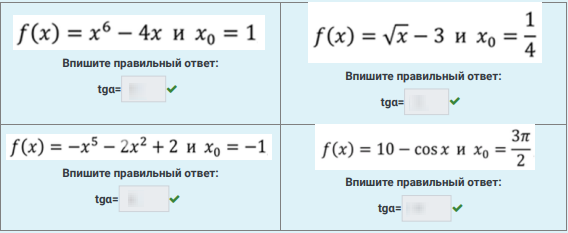 Найдите тангенс угла касательной к графику функции y=f(x) в точке с абсциссой х0 и положительным направлением оси OX. Ответ впишите цифрой, с использованием знака «-» при необходимости