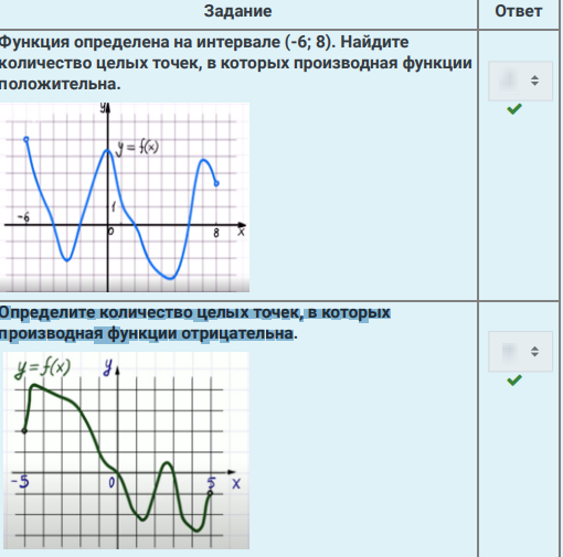 - Функция определена на интервале (-6; 8). Найдите количество целых точек, в которых производная функции положительна.