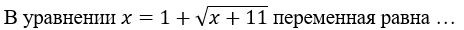 В уравнении х = 1 + Öx 4+11 переменная равна ...