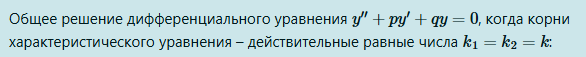 Общее решение дифференциального уравнения , когда корни характеристического уравнения – действительные равные числа