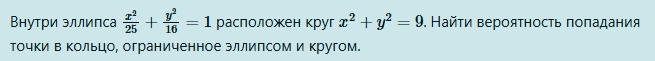 Внутри эллипса расположен круг . Найти вероятность попадания точки в кольцо, ограниченное эллипсом и кругом.