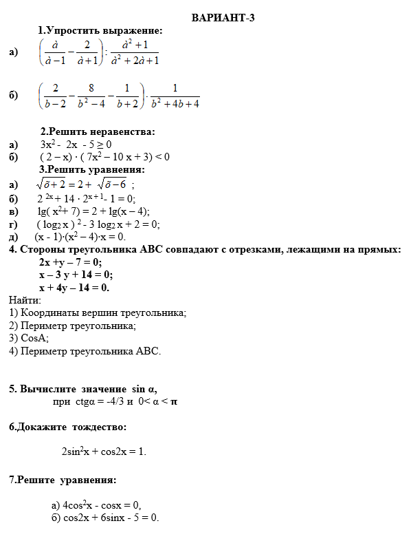 Для студентов по предмету МатематикаКонтрольная работаКонтрольная работа