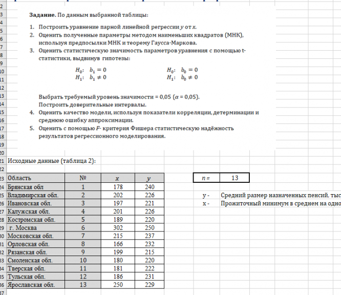 5. Оценить с помощью F-критерия Фишера статистическую надёжность результатов регрессионного моделирования.