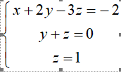 Решите систему х+2y-3z=-2; y+z=0; z=1