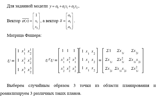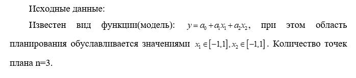 Известен вид функции(модель): , при этом область планирования обуславливается значениями . Количество точек плана n=3.