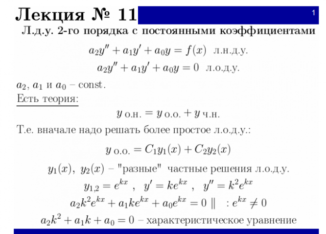 Лекции: Линейное дифференциальное уравнение 2-го порядка с постоянными коэффициентами