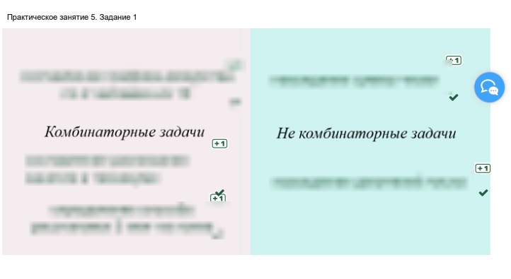 Рассмотрите задачи, какие из них являются комбинаторными, а какие нет? Переместите их в соответствующие поля, зажав левую кнопку компьютерной мыши..