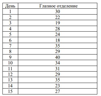 Задача: Имеются данные за пятнадцать дней по количеству пациентов клиники,