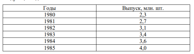Главная » Учебные материалы » Математика » Решения задач » Несколько классов/семестров » Производство цветных телевизоров в СССР характеризуется следующими данными: