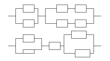 Вероятность выхода из строя каждого из независимо работающих элементов электрической цепи p = 0,05. Определить, какая из двух электрических цепей надежнее.