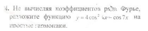 Не вычисляя коэффициентов ряда Фурье, разложите функцию на простые гармоники.