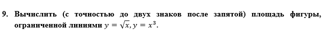 Задача: Вычислить (с точностью до двух знаков после запятой) площадь фигуры, ограниченной линиями