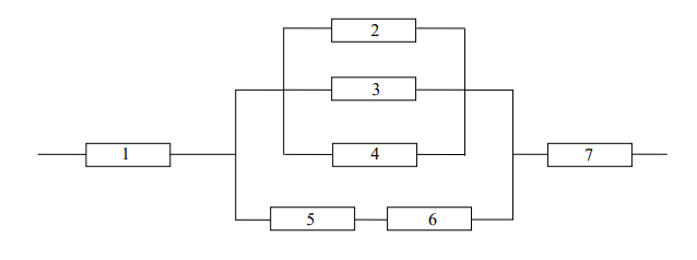 Вероятность безотказной работы каждого из независимо работающих элементов функциональной цепи равна 0,8. Найти вероятность отказа цепи, изображенной на рисунке.