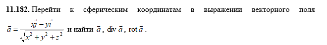 Задача: Перейти к сферическим координатам в выражении векторного поля