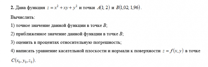 Задача: Вычислить: 1) точное значение данной функции в точке В; 2) приближенное значение данной функции в точке В;