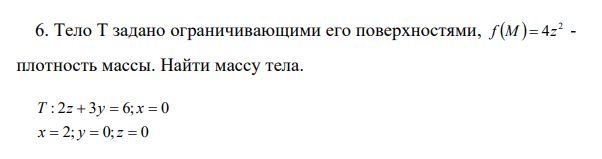 Задача: Тело Т задано ограничивающими его поверхностями, - плотность массы. Найти массу тела.