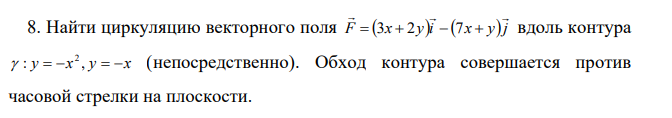Найти циркуляцию векторного поля F  x yi  x yj     3  2  7  вдоль контура : y  x , y  x 2  (непосредственно). Обход контура совершается против часовой стрелки на плоскости.