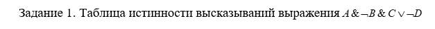 Задача: Таблица истинности высказываний выражения