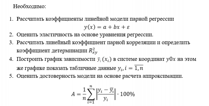 Задача: Расcчитать коэффициенты линейной модели парной регрессии