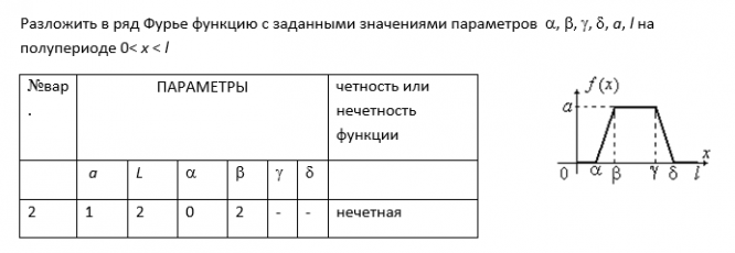 Для студентов по предмету МатематикаРазложить в ряд Фурье функцию с заданными значениями параметров на полупериоде 0< x < lРазложить в ряд Фурье функцию с заданными значениями параметров на полупериоде 0< x < l