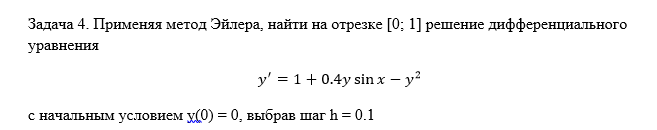 Задача: Применяя метод Эйлера, найти на отрезке [0; 1] решение дифференциального уравнения