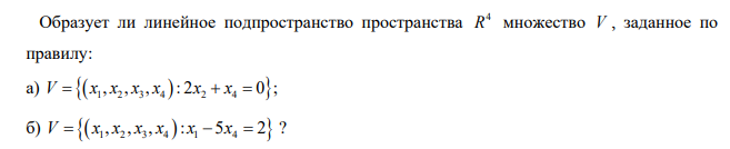 Образует ли линейное подпространство пространства 4 R множество V , заданное по правилу: