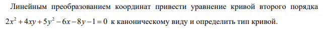 Линейным преобразованием координат привести уравнение кривой второго порядка к каноническому виду и определить тип кривой.