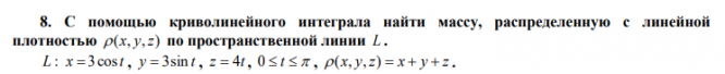 Задача: С помощью криволинейного интеграла найти массу, распределенную с линейной плотностью
