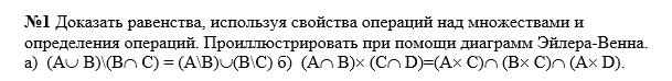 Доказать равенства, используя свойства операций над множествами и определения операций. Проиллюстрировать при помощи диаграмм Эйлера-Венна