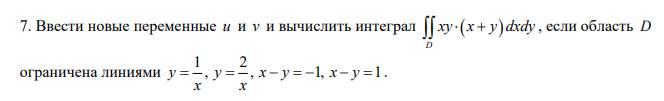 Задача: Ввести новые переменные u и v и вычислить интеграл, если область D ограничена линиями