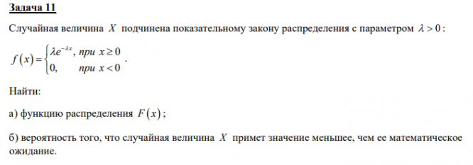 Задача: Случайная величина X подчинена показательному закону распределения с параметром