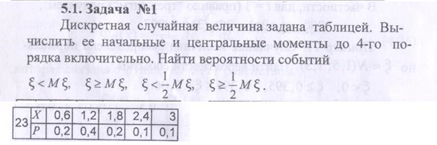 Дискретная случайная величина задана таблицей. Вычислить ее начальные и центральные моменты до 4-го порядка включительно. Найти вероятности событий.