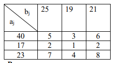 Решить транспортную задачу. Заданы мощности поставщиков аj(j = 1, 2, 3), емкости потребителей bj(j = 1, 2, 3) и матрица стоимостей перевозок единицы продукции от каждого поставщика каждому потребителю. Требуется найти план перевозок, при котором суммарные транспортные затраты будут наименьшими