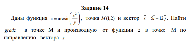 Даны функция, точка M (1;2) и вектор. Найти gradz в точке М и производную от функции z в точке М по направлению вектора s .