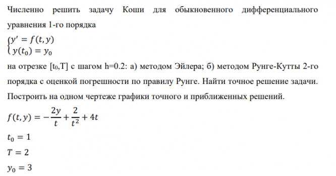 Главная » Учебные материалы » Математика » Решения задач » Несколько классов/семестров » Численно решить задачу Коши для обыкновенного дифференциального уравнения 1-го порядка