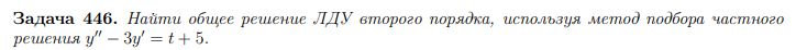 Задача: Найти общее решение ЛДУ второго порядка, используя метод подбора частного решения