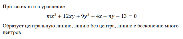 При каких m и n уравнение 𝑚𝑥 2 + 12𝑥𝑦 + 9𝑦 2 + 4𝑥 + 𝑛𝑦 − 13 = 0 Образует центральную линию, линию без центра, линию с бесконечно много центров
